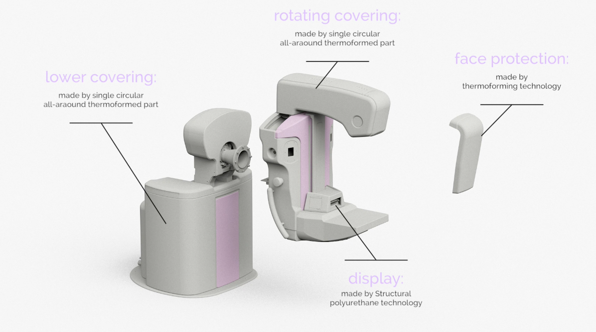 The combination of thermoforming and structural PUR technologies provides the opportunity to replace metallic frames with plastic components. Together they give the possibility to manufacture easy-to-install and easy-to-maintain devices, without compromising on aesthetics.